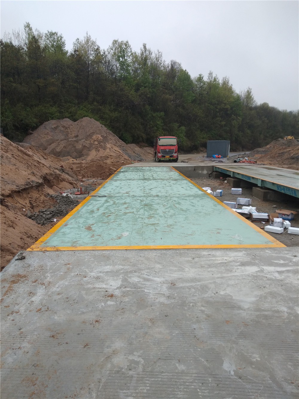 采購背景:信陽市商城縣鳳凰窩河沙廠,隸屬于信陽商城縣城投河沙治理項目,該項目覆蓋多個采沙點(diǎn)。該采沙點(diǎn),采集量大,稱重車輛普遍為大型貨車,該采沙點(diǎn)前期購置了一臺中原恒瑞3.4x16m定額150噸地磅,但由于地勢特殊,一臺地磅不能滿足采沙場過磅需求,經(jīng)恒瑞技術(shù)人員實(shí)地勘探。建議其再加購一臺地磅方便生產(chǎn),兩臺同等規(guī)格地磅并排安裝于廠區(qū)空地處,實(shí)現(xiàn)一來一回雙向過磅。地磅秤臺面板12mm,秤臺自重9000kg,堅固耐用,穩(wěn)定性強(qiáng),精準(zhǔn)度高。現(xiàn)地磅已安裝調(diào)試完成并投入使用。